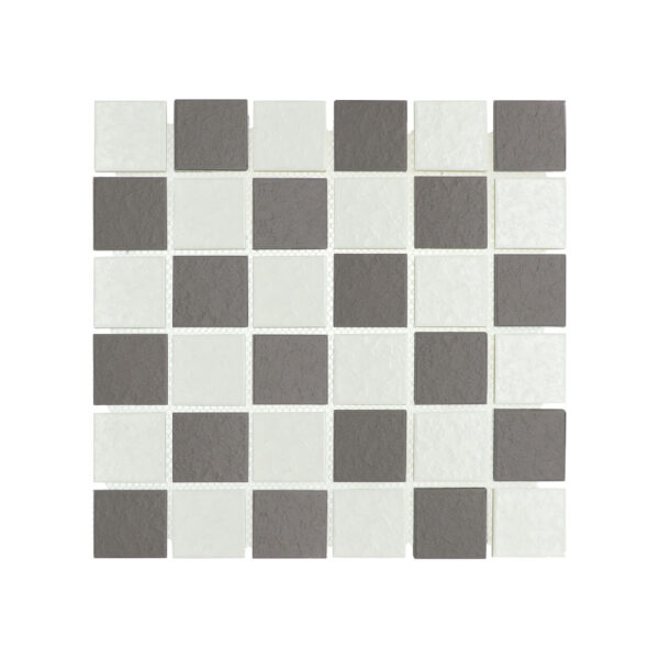 Porcelain Mosaic Checkered White & Light Grey
